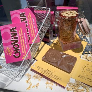 Am Stand von Ecofinia setzen die Neuheiten auf höheren Kakaoanteil. So besteht die neue dreiteilige Demeter Schokoladen Serie von Vivani aus den Sorten „Dunkle Milch 70% Cacao“, „Edel Bitter 80% Cacao“ und „Edel Bitter 100%“. Auch bei der auf vegane Schokoladen spezialisierten Schwestermarke iChoc setzt die neueste Sorte auf mehr Kakao. Die Sorte „Jackfruit Coconut“ hat einen Kakaoanteil von 62 Prozent. Sie wurde ursprünglich für den US-Markt entworfen und wird ab März auch in Deutschland angeboten. Für den Herbst hat das Unternehmen zudem angekündigt, das jede Tafel bis zum einzelnen Kakaofarmer Rückverfolgbar sein soll. Dann haben Kunden die Möglichkeit einen QR-Code auf der Verpackung zu scannen und direkt Informationen zum Farmer zu erhalten.