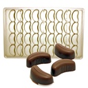 Mit dieser professionelle Pralinenform können Sie rechteckige Pralinen mit eingraviertem Kakaofrucht Motiv erstellen. Form aus Polycarbonat.
